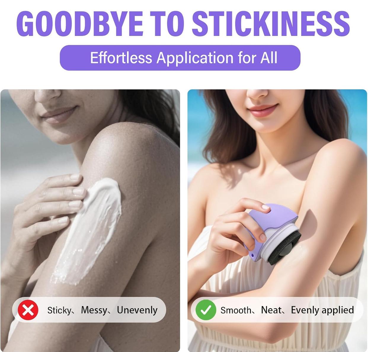 One tool, endless uses – apply sunscreen, lotion, foundation, gel self-tanner, or body butter with ease!