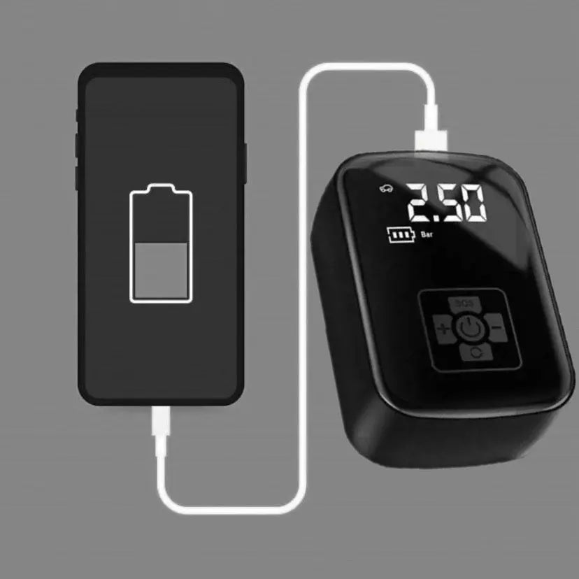 Don't let a flat tire ruin your day! Our INSTANT TIRE INFLATOR with built-in power bank is your ultimate problem solver. Fast, easy to use, and completely wireless, it operates alone so you don't have to stand beside it. Multi-tasked, not only use for tires, but also for any inflatables. Small and portable, it's a must-have in any car or home.